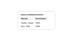 Le commissioni di conversione da una criptovaluta ad un’altra (Crypto-Crypto) e per le operazioni di compravendita del Token Young (YNG), restano invariate come riportato nella tabella seguente.