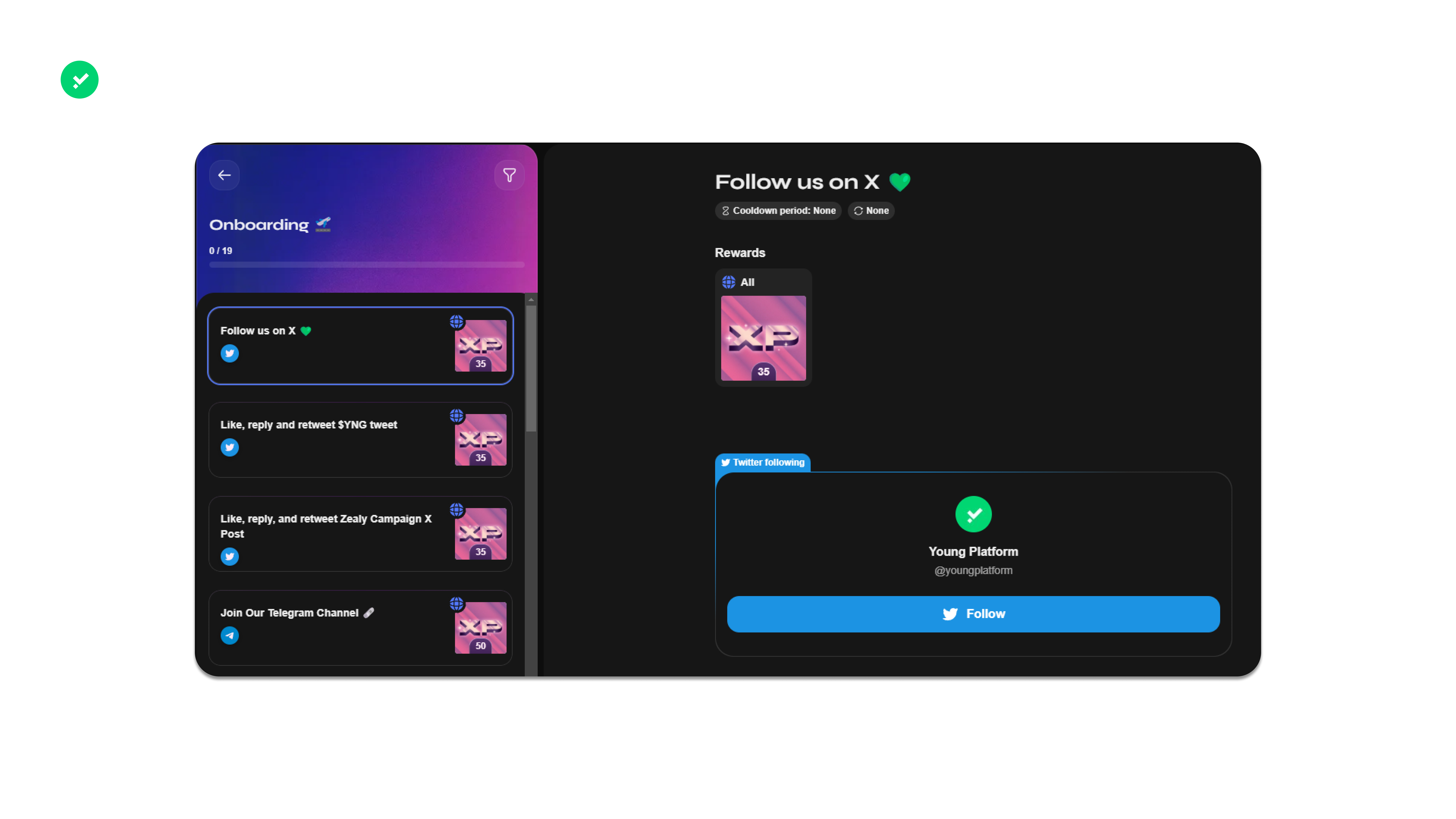 Il tuo asso nella manica per il concorso The Reveal di Young Platform? La campagna di interazione social su Zealy. Scopri come ottenere il massimo delle Gemme