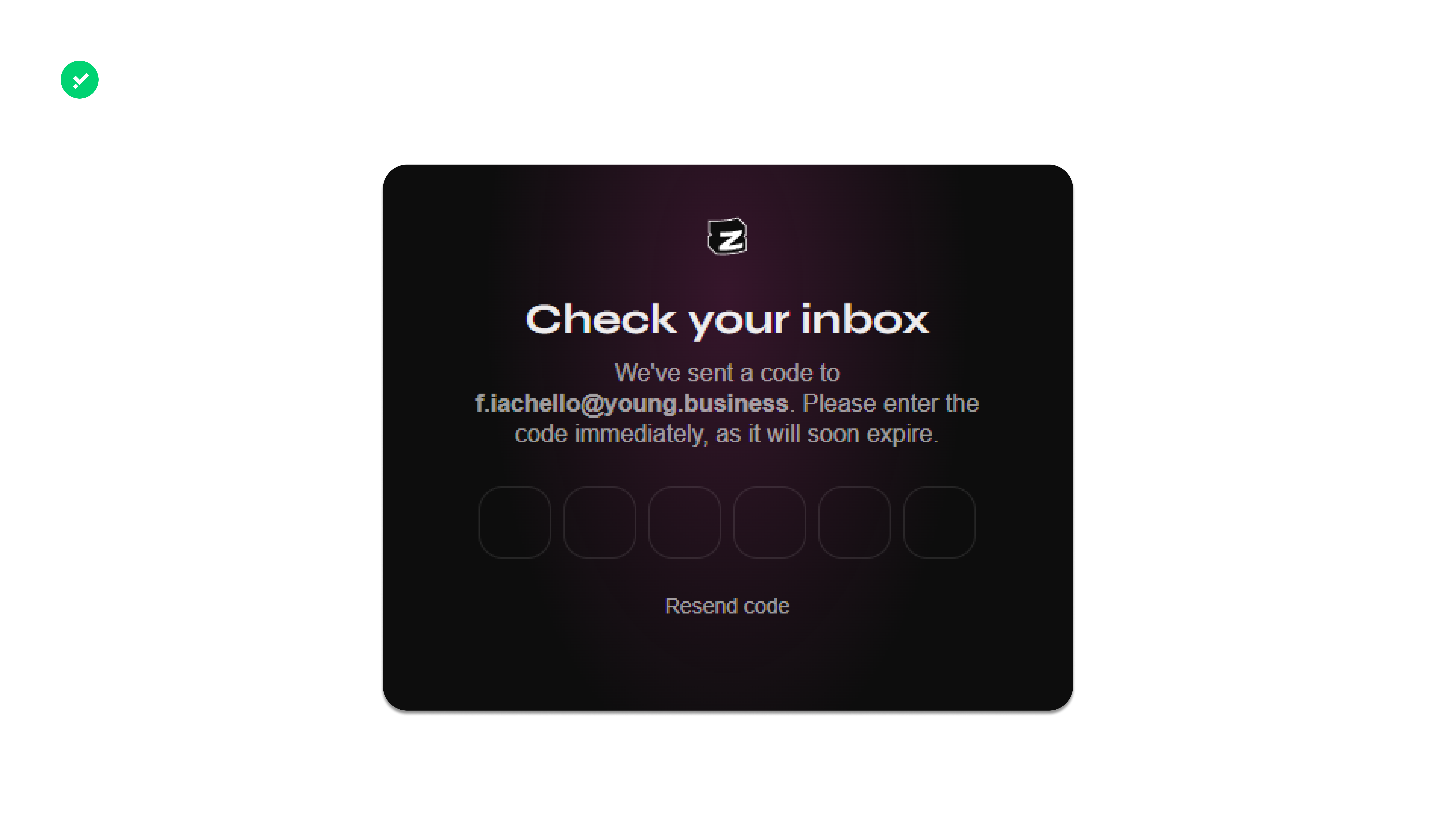 2. Conferma l’account con il codice ricevuto via email e scegli un username.